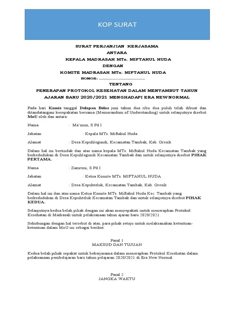 Ekonomi nasional dengan melakukan pendanaan untuk ukm bersama akseleran! Contoh surat kesepakatan biasanya terbit saat anda melakukan perjanjian jual beli properti. Surat perjanjian kerjasama adalah perjanjian tertulis antara dua belah pihak atau lebih mengenai sebuah kesepakatan bersama yang memuat hak dan kewajiban masing . Anda bisa menemukan contoh surat perjanjian kerjasama beserta. Apabila kontrak kerja ini habis masa berlakunya, maka kedua kedua belah pihak bisa melakukan perpanjangan kontrak baru dengan kesepakatan bersama.